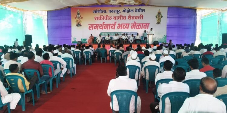सांगोला – शक्तीपीठ महामार्ग बाधीत शेतकऱ्यांनी मुळ आरेखणाप्रमाणे शक्तीपीठ महामार्ग होण्यासंदर्भात शुक्रवार दि.२६ डिसेंबर रोजी बिर्ला भवन, कार्यशाळा पंढरपूर येथे समर्थनार्थ मेळावा घेतला. सदर मेळाव्यास सांगोला, पंढरपूर, मोहोळ या तालुक्यातील तसेच सांगली जिल्ह्यातील शेतकरी मोठ्या संख्येने सहभागी झाले होते. याप्रसंगी मोहोळचे आ.राजू खरे, माजी आ.प्रशांत परिचारक, सांगोल्याचे आ.बाबासाहेब देशमुख, डॉ.अनिकेत देशमुख, पंढरपूर भाजप तालुकाध्यक्ष मस्के, माजी सभापती विजयदादा देशमुख उपस्थित होते.