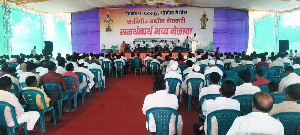 सांगोला – शक्तीपीठ महामार्ग बाधीत शेतकऱ्यांनी मुळ आरेखणाप्रमाणे शक्तीपीठ महामार्ग होण्यासंदर्भात शुक्रवार दि.२६ डिसेंबर रोजी बिर्ला भवन, कार्यशाळा पंढरपूर येथे समर्थनार्थ मेळावा घेतला. सदर मेळाव्यास सांगोला, पंढरपूर, मोहोळ या तालुक्यातील तसेच सांगली जिल्ह्यातील शेतकरी मोठ्या संख्येने सहभागी झाले होते. याप्रसंगी मोहोळचे आ.राजू खरे, माजी आ.प्रशांत परिचारक, सांगोल्याचे आ.बाबासाहेब देशमुख, डॉ.अनिकेत देशमुख, पंढरपूर भाजप तालुकाध्यक्ष मस्के, माजी सभापती विजयदादा देशमुख उपस्थित होते.