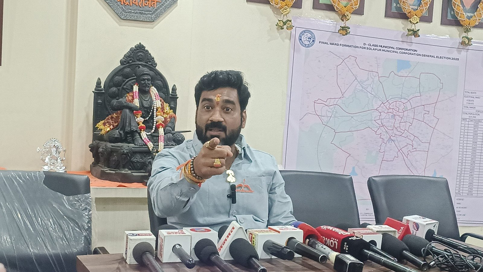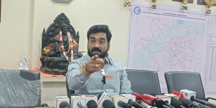 सोलापूर – पालकमंत्री जयकुमार गोरे यांच्यावर जिल्ह्याच्या पालकत्वाची जबाबदारी असताना ते सोलापूर महानगरपालिका निवडणूकीच्या माध्यमातून आमदार देवेंद्र कोठे यांना हाताशी धरून रात्रीबेरात्री सोलापुरात फिरून प्रभाग ६ चे मराठा समाजाचे उमेदवार व नेतृत्व अमोल शिंदे, प्रभाग ५ चे दलित चळवळीचे नेते आनंद चंदनशिवे, प्रभाग १५ धनगर समाजाचे नेते चेतन नरोटे यांना संपविण्याचे षडयंत्र रचले जात असल्याचा आरोप शिवसेनेचे जिल्हाप्रमुख व प्रभाग ७ चे शिवसेनेचे पॅनल प्रमुख अमोल शिंदे यांनी बुधवारी पत्रकार परिषदेत केला आहे.