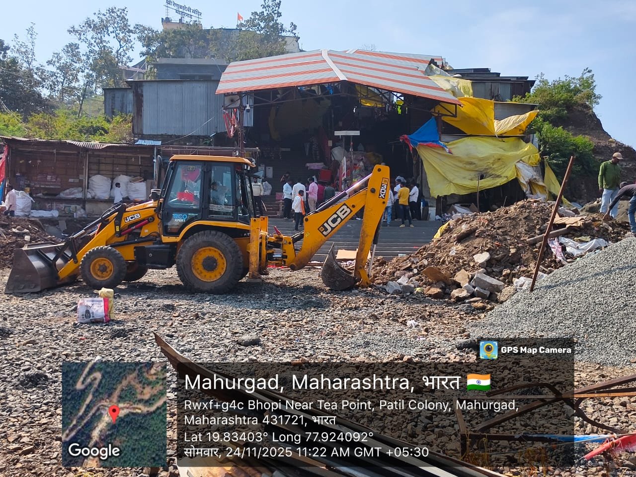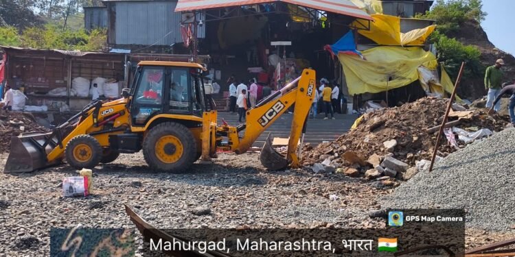 माहूर / नांदेड – श्रीक्षेत्र माहूर गडावरील राज्यातील देवीच्या साडेतीन शक्तिपीठांपैकी एक मूळ जागृत पीठ असलेल्या श्री रेणुकादेवी मंदिर गडावर केंद्रीय रस्ते वाहतूक मंत्री नितीन गडकरी यांनी मातेच्या दर्शनासाठी २५० गड पायऱ्या चढणे-उतरणे असमर्थ असलेल्या भाविकांच्या सुविधेसाठी ५१ कोटी रुपयांचा भरीव निधी देऊन लिफ्ट आणि स्कायवाकच्या कामाला मंजुरी दिली होती. त्या प्रकल्पाचे काम अनेक अडथळे पार करत संथगतीने का होईना सध्या प्रगतीपथावर आहे.परंतु ह्या प्रकल्पाचे काम करताना पायऱ्या चढताना उजव्या बाजूला दुकाने असलेल्या अनेक लघुव्यवसायिकांच्या उदरनिर्वाहाचे साधन असलेल्या दुकानांना स्थलांतरित करण्याचा यक्षप्रश्न निर्माण झाला आहे .मात्र आता प्रशासनाकडून यावर उचित तोडगा काढण्यात आला असून,संभाव्य पार्किंगच्या ठिकाणी गाळे निर्मिती करून त्यांना प्रतिष्ठान रिकामी करण्यात सांगण्यात आल्याने दि.२४ नोव्हेंबर रोजी लघु व्यावसायिकांनी तहसीलदार अभिजीत जगताप यांच्या उपस्थितीत आपले प्रतिष्ठान रिकामे करण्यास सुरुवात केल्याने लिफ्ट आणि स्काय वॉकच्या कामाला आता खऱ्या अर्थाने गती मिळण्याचा मार्ग मोकळा झाला आहे.