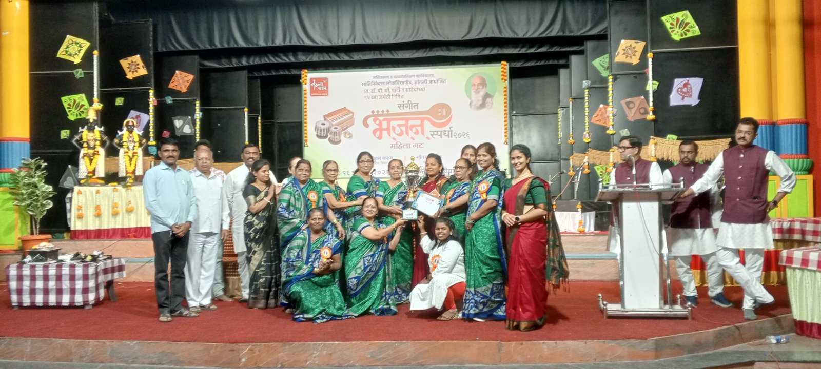 सांगोला – स्व.प्राचार्य डॉ.पी.बी.पाटील यांच्या ९४ व्या जयंती निमित्त ललित, कला व नाट्य तंत्र शिक्षण महाविद्यालय शांतिनिकेतन लोक विद्यापीठ, सांगली यांनी राज्यस्तरीय महिला भजन स्पर्धेचे आयोजन केले होते.
