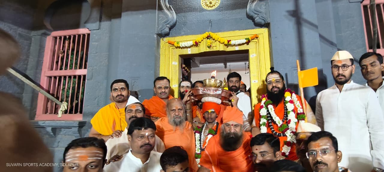 यावेळी उपस्थित भाविकांनी ‘श्री वीरतपस्वी चन्नवीर शिवाचार्य महाराज की जय’, ‘तपोरत्न योगीराजेंद्र शिवाचार्य महाराज की जय’ च्या घोषणा दिल्या. त्यानंतर मिरवणुकीला सुरुवात झाली. मिरवणुकीत सर्वात पुढे ट्रॅक्टरवर श्री वीरतपस्वीजींची प्रतिमा, हलगी, हळदे बँड, विविध गावचे पुरवंत श्री वीरतपस्वी यांची पालखी, विद्यार्थ्यांचे पथक, बैलजोडी व रथ यासह ही मिरवणूक मल्लिकार्जुन मंदिर, बाळीवेस, चाटी गल्ली, मंगळवार पेठ, मधला मारुती, विजापूर वेस,पंचवटी, गुरुभेट ,सात रस्ता, गांधीनगर,होटगी नाका, मजरेवाडी या पारंपारिक मार्गाने ही मिरवणूक निघाली. मिरवणूक मजरेवाडी ( विसावा )येथे आल्यानंतर मजरेवाडीतील सुवासिनी डोक्यावर जलकुंभ आणून भक्तीभावाने आत्मज्योतीचे स्वागत केले .मिरवणुकीच्या वाटेवर ठिकठिकाणी भक्तानी रांगोळीच्या व फुलांच्या पायघड्या घालून मिरवणुकीचे स्वागत करीत होते व आत्मज्योत आपल्या शिरावर घेत होते मिरवणूक होटगी येथे पोहोचल्यानंतर ग्रामस्थांनी आत्मज्योतीचे स्वागत करून गावातून भव्य मिरवणूक काढली.