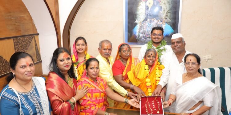 पंढरपूर – संभाजीनगर येथील भाविक सौ. कहूबाई पांडुरंग सोनवणे यांनी श्री विठ्ठल चरणी स्नेहपूर्वक मौल्यवान सुवर्ण अर्पण केले आहे.