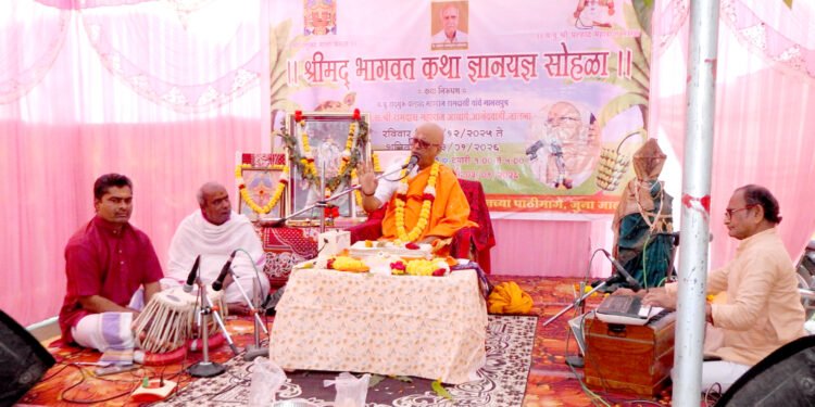 जालना – जुना जालन्यातील बचत भवनमागे असलेल्या योगेश्वरी कॉलनी भागात वेद शास्त्री संपन्न श्री.रामदास महाराज आचार्य यांच्या अमृतवाणीतून श्रीमद् भागवत कथा ज्ञानयज्ञ सप्ताहास रविवार दि.२८ डिसेंबर रोजी दुपारी प्रारंभ झाला. स्व. पद्माकरराव अकोलकर यांच्या स्मरणार्थ या सोहळ्याचे आयोजन करण्यात आले आहे.