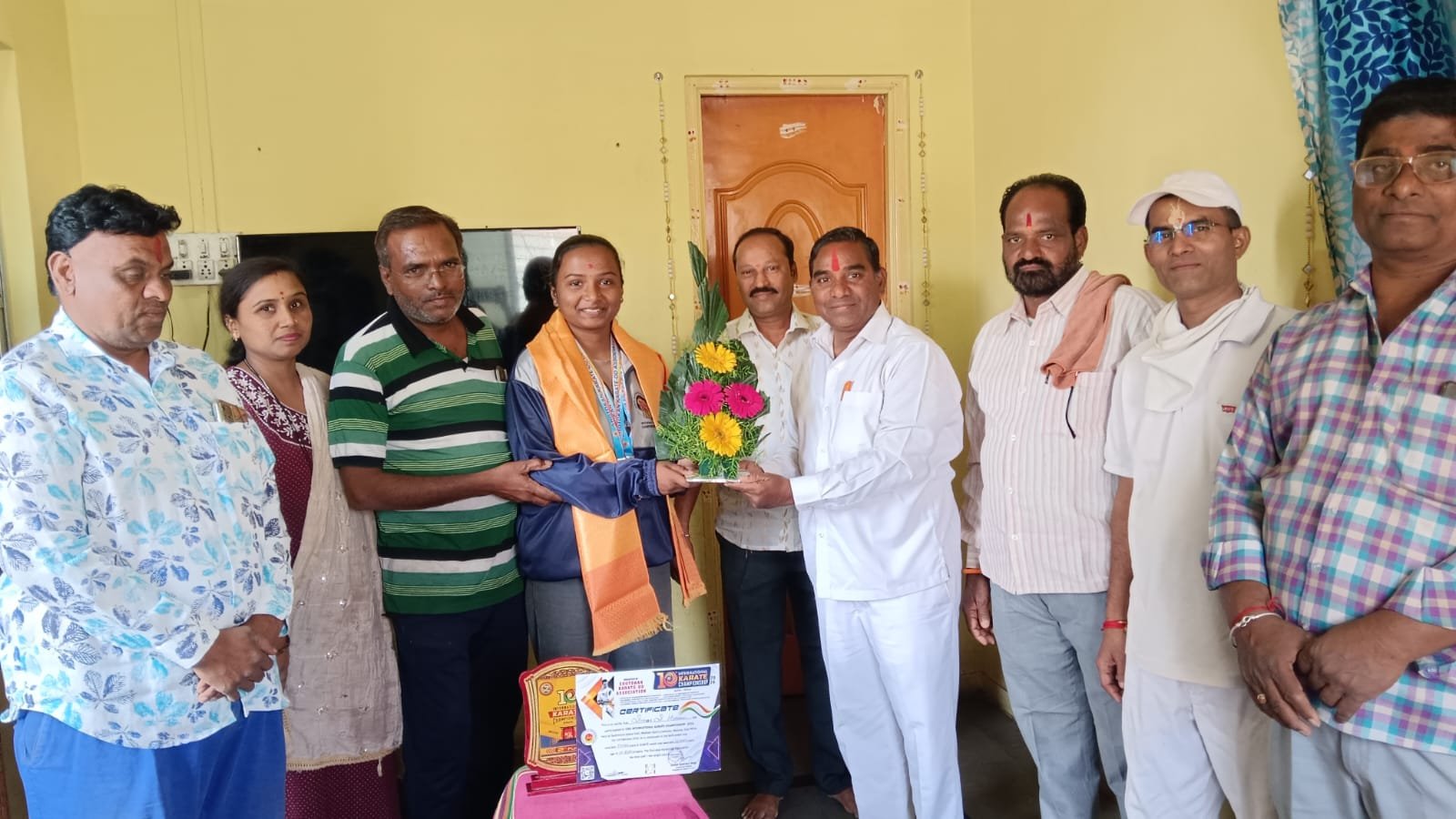 सोलापूर – पेड्डेम इनडोअर स्टेडियम मापुसा गोवा येथे नुकत्याच पार पडलेल्या 10 व्या आंतरराष्ट्रीय कराटे स्पर्धेत विडी घरकूल सी ग्रुप मध्ये राहणारी कु. स्नेहा सिध्दाराम हिप्परगी यांना इंडिया गोवा इंटरनॅशनल मॅचेस मध्ये फाईट सिल्व्हर मेडल व काता टेक्निक ब्राऊन मेडल पटकावून यश संपादन केल्या बद्दल विजय इप्पाकायल मित्र परिवाराच्या वतीने त्यांना शाल व पुष्पगुच्छ देऊन सत्कार करण्यात आला.