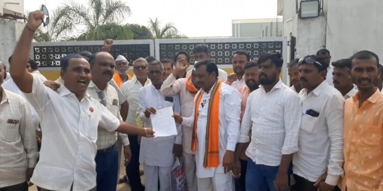 आंदोलन स्थळी शेतकरी संघटनेचे राज्याध्यक्ष शंकर गायकवाड, इतर नेते आणि शेतकरी दिसत आहेत.