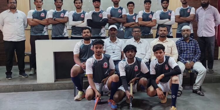 फोटो ओळ – विजयी संघासोबत प्राचार्य डॉ. आय.जे.तांबोळी, डॉ. मुश्ताक शेख, श्री.तलहा शेख व कर्णधार अमजद अली शेख