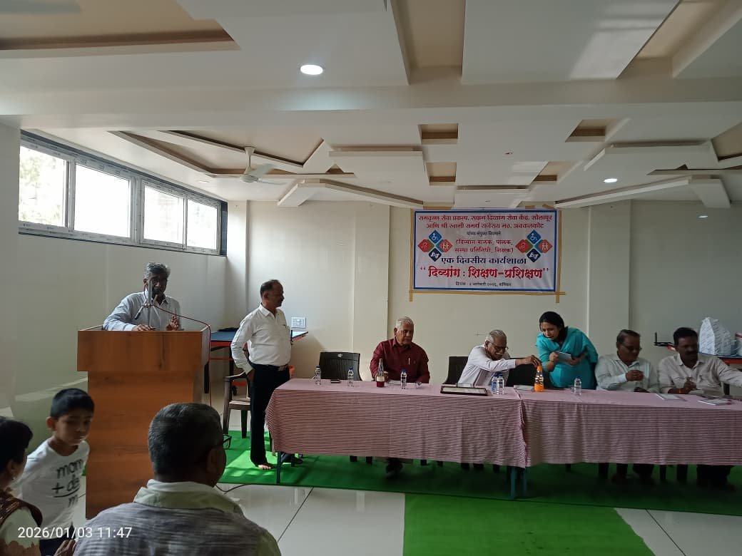 ते अबनॉर्मल होम मानवीय संशोधन संस्था, पुणे, रामकृष्ण परमहंस सेवा केंद्र, सक्षम दिव्यांग सेवा केंद्र आणि श्री स्वामी समर्थ राजेराय मठ, अक्कलकोट यांच्या संयुक्त विद्यमाने आयोजित करण्यात आलेल्या दिव्यांग बालक, पालक व संस्था प्रतिनिधींच्या सक्षमीकरणासाठीच्या एकदिवसीय कार्यशाळेत अध्यक्षस्थानावरून बोलत होते.