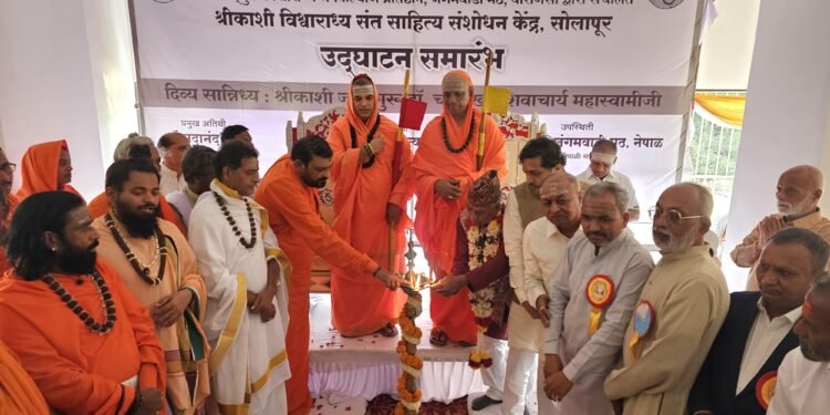 सोलापूर – सोलापूर ही संतांची भूमी आहे या या भूमीनेच जगाला अनेक थोर संत दिले. सोलापूर सारख्या संतांच्या भूमीमध्ये अशा दातृत्वाची खाण आहे. त्यामुळेच सोलापुरात आजही संस्काराच्या रूपातून श्रम आणि निष्ठा ही जपली जाते. त्यामुळेच जगातील पहिले संत साहित्याचे संशोधन केंद्र सोलापूरमध्ये होत आहे. हे सोलापूरकरांचे भूषण आहे. या संशोधनाचे कार्य सार्थ्य करण्याचं काम काशीपीठ करते आहे. याचा आम्हाला गौरव आहे. असे गौरोद्गार काशी जगद्गुरु श्री डॉ.चंद्रशेखर शिवाचार्य महास्वामीजी यांनी श्री जगद्गुरु विश्वाराध्य जनकल्याण प्रतिष्ठान जंगमवाडी मठ वाराणसीद्वारा संचलित श्री काशी विश्वराध्य संत साहित्य संशोधन केंद्राच्या उद्घाटनप्रसंगी काढले.