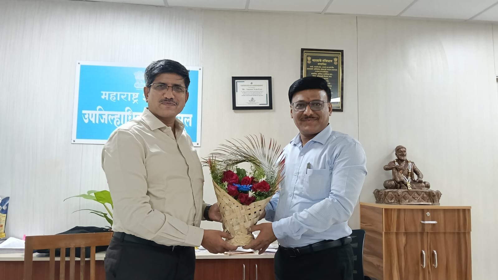 शुक्रवारी त्यांनी आपल्या पदाचा पदभार स्वीकारला यावेळी निवासी उपजिल्हाधिकारी आणि उपजिल्हाधिकारी संतोष देशमुख यांनी त्यांचे स्वागत केले