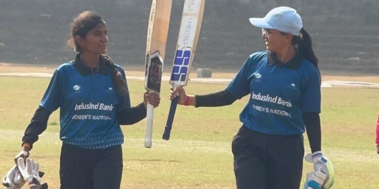 नाणेफेक जिंकून प्रथम फलंदाजी करताना महाराष्ट्रने निर्धारीत 20 षटकात बिन बाद 232 धावांचा डोंगर रचला. यात सोलापूरच्या गंगा कदम हिने 22 चौकारांच्या मदतीने नाबाद 138 धावा केल्या. तसेच नागपूरच्या महेक बिरघडे हिनेही नाबाद 67 धावांची खेळी केली.