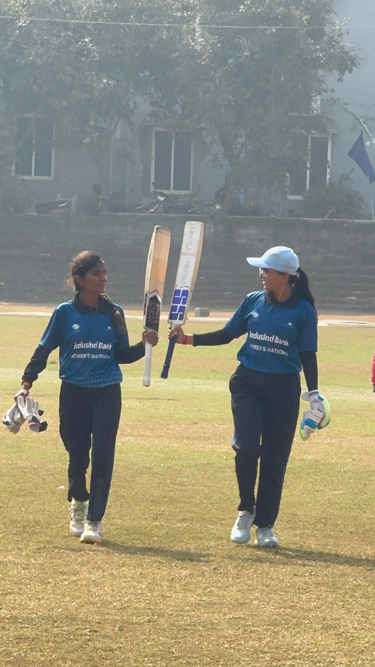 सोलापूरच्या गंगा हिने राष्ट्रीय स्तरावर आजचे हे तिसरे शतक केले आहे. या स्पर्धेत तिने रविवारी उत्तर प्रदेशविरुद्ध व आज सोमवारी तेलंगणाविरुद्ध असे सलग दोन सामन्यात 2 शतके झळकावली आहेत.