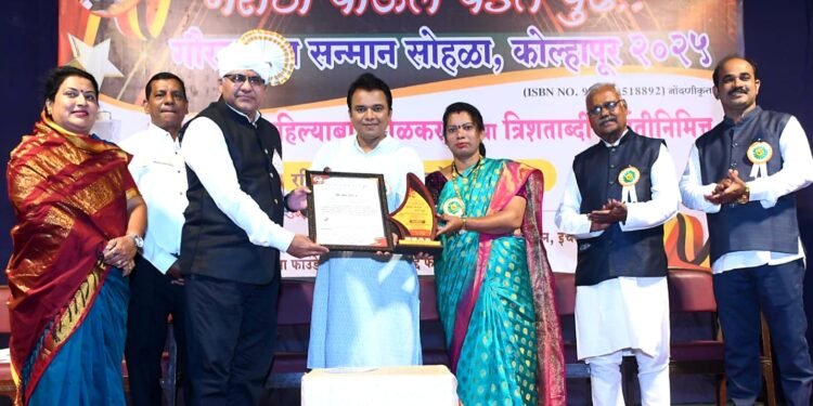 सोलापूर – सोलापूर शहराचे सुपुत्र किरण जोशी, त्यांच्या पत्नी प्रा. दुर्गा जोशी आणि कन्या कु. शांभवी जोशी यांच्या शैक्षणिक, कला आणि संस्कृत क्षेत्रातील भरीव योगदानाचा गौरव नुकताच कोल्हापूर येथे करण्यात आला. २६ ऑक्टोबर रोजी पुण्यश्लोक अहिल्यादेवी होळकर यांच्या ३०० व्या जयंतीनिमित्त आयोजित ‘गौरवगाथा सन्मान सोहळा’ मध्ये या तिघांनाही मानाचे राज्यस्तरीय पुरस्कार प्रदान करण्यात आले.