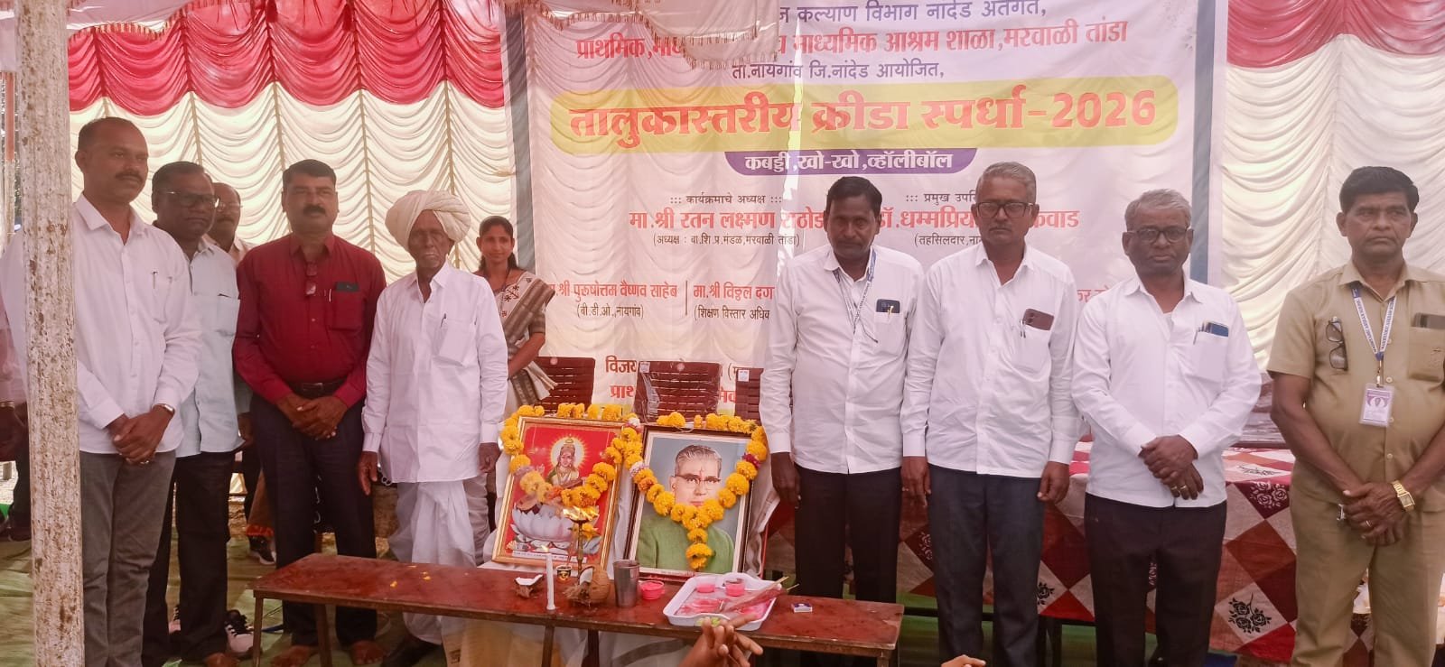 नायगांव : इतर मागास बहुजन कल्याण विभाग, नांदेड अंतर्गत नायगाव तालुक्यातील मरवाळी तांडा येथील बालक शिक्षण प्रसारक मंडळ संचलित माध्यमिक आश्रम शाळेत एक दिवसीय तालुकास्तरीय क्रीडा स्पर्धांचे उत्साहात आयोजन करण्यात आले. या स्पर्धेला विद्यार्थ्यांचा प्रचंड आणि उत्स्फूर्त प्रतिसाद लाभला.
