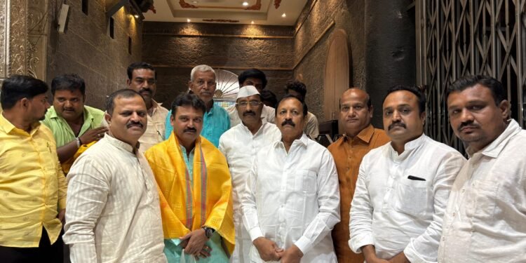 फोटो ओळ – श्री वटवृक्ष स्वामी महाराज मंदिरात आमदार विजयकुमार देशमुख, सिद्धेश्वर देवस्थानचे मानकरी राजशेखर हिरेहब्बू यांचा सत्कार करताना चेअरमन, नगरसेवक महेश इंगळे, माजी नगराध्यक्ष बसलिंगप्पा खेडगी, नगरसेवक महेश हिंडोळे व अन्य भाविक भक्त दिसत आहेत.