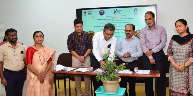 सोलापूर – वालचंद कला व विज्ञान महाविद्यालयात जैवतंत्रज्ञान विभागाच्या वतीने “बायो इनोक्युलंट इन ॲग्रो इंडस्ट्रीज फॉर सस्टेनेबल ॲग्रीकल्चर” या विषयावर राज्यस्तरीय कार्यशाळेचे यशस्वी आयोजन करण्यात आले. कृषी क्षेत्रातील शाश्वत विकास, जैवखत निर्मिती आणि औद्योगिक संधी या महत्त्वपूर्ण विषयांवर आधारित ही कार्यशाळा विद्यार्थ्यांसाठी मार्गदर्शक ठरली. कार्यक्रमास प्रमुख अतिथी म्हणून लोकमंगल महाविद्यालयाचे प्राचार्य डॉ. विकास घुटे उपस्थित होते, तर अध्यक्षस्थानी महाविद्यालयाचे प्राचार्य डॉ. संतोष कोटी होते. या कार्यक्रमात विज्ञान शाखेचे उपप्राचार्य डॉ. राजशेखर हिप्परगी आणि समन्वयक म्हणून बायोटेक्नॉलॉजी च्या विभागप्रमुख डॉ. रचना कपूर उपस्थित होते.