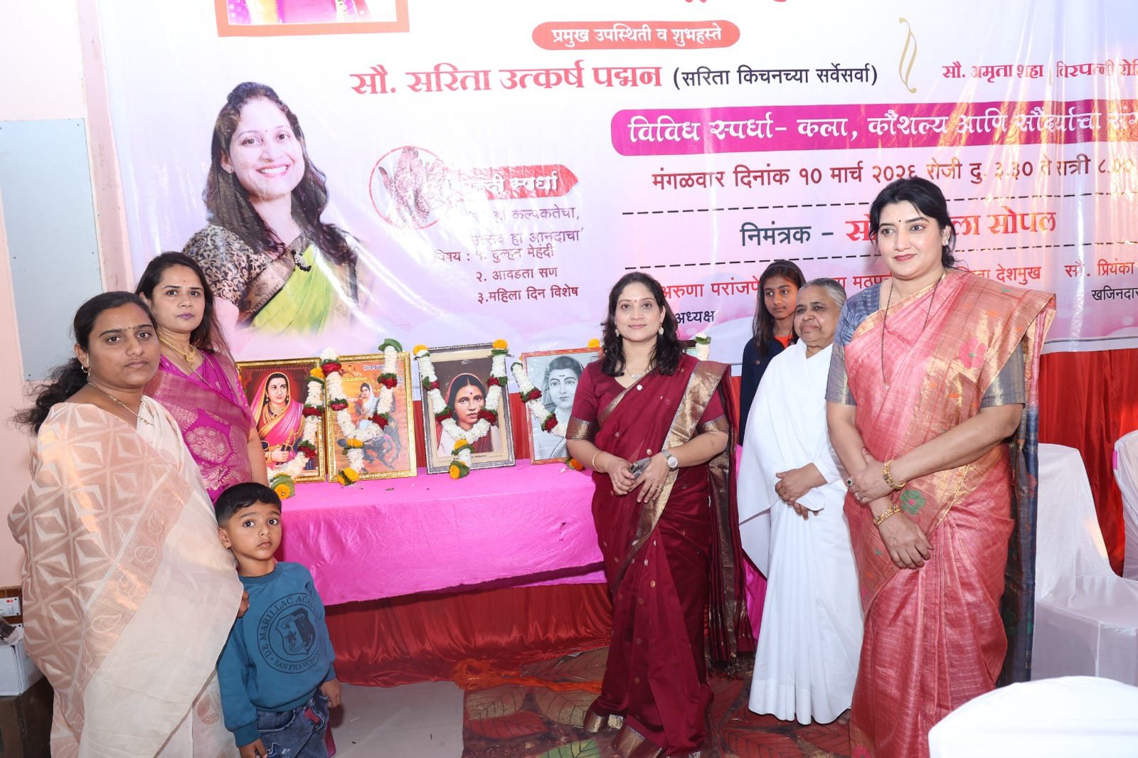 त्यामध्ये सौ. सरिता पद्मन, शिक्षण क्षेत्रात अमृता शहा, वीरपत्नी रोहिणी काकडे, ब्रम्हकुमारी संगीतादीदी, आणि कु. सान्वी गोरे हिला महिला राजस्तरीय बुद्धिबळ स्पर्धेमध्ये उज्वल यश मिळविल्याबद्दल सन्मान करण्यात आला. तसेच महिलाच्या विविध गुणांना वाव देण्यासाठी मेहंदी, पाककला आणि वेशभूषण या स्पर्धांचे आयोजन करण्यात आले.