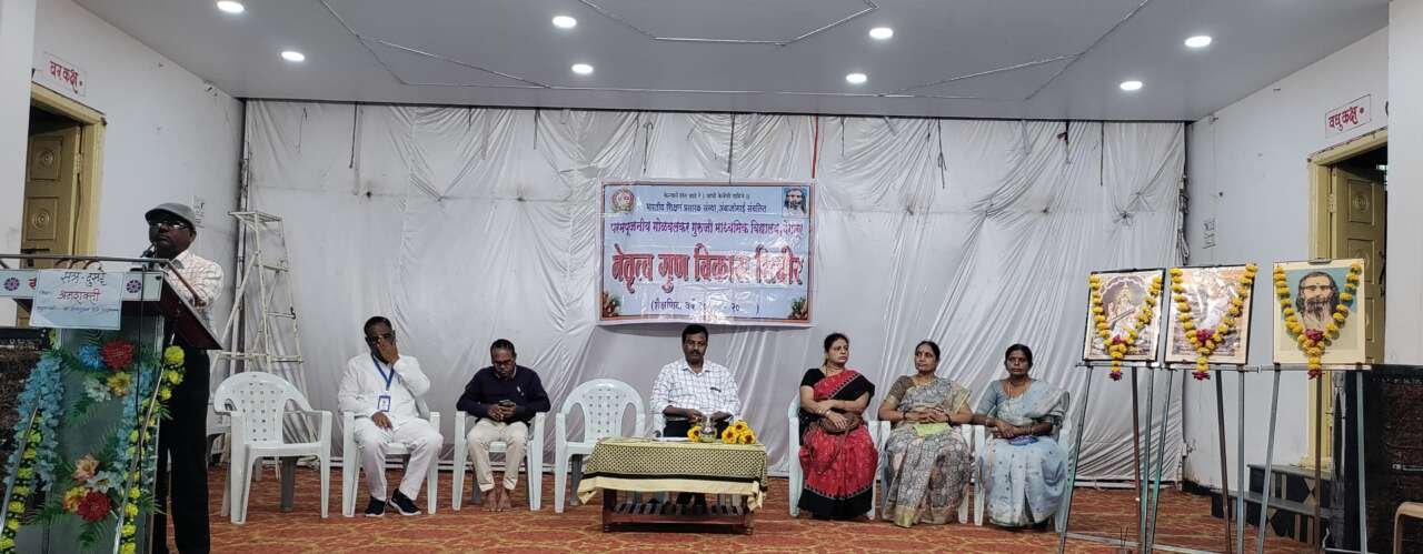 *देगलूर :* “विद्यार्थ्यांनो महापुरुषांना जातीत बांधू नका. त्यांना वाचा. त्यांचे कार्य समजून घ्या, तरच महापुरुष कळतील”, असे उदगार सुप्रसिद्ध साहित्यिक समीक्षक तथा तज्ञ मार्गदर्शक शंकर कुद्रे यांनी काढले. ते परमपूज्य गोळवलकर गुरुजी विद्यालया तर्फे आयोजित नेतृत्व गुण विकास शिबिरात प्रमुख वक्ते म्हणून बोलत होते. यावेळी कार्यक्रमाचे अध्यक्ष देगलूरचे सुप्रसिध्द व्यापारी नारायणशेठ पोलावार हे होते.