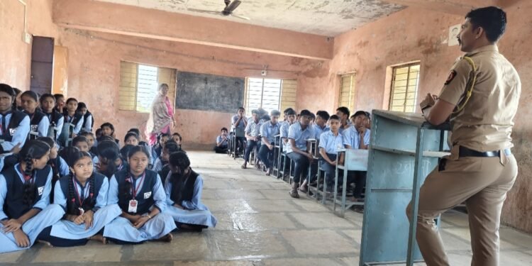 यावेळी निर्भया पथक पोलीस कॉन्स्टेबल बाबासाहेब घाडगे, नम्रता गटकुळ ,भाऊसाहेब महानोर , मुख्याध्यापक संतोष सरवळे , शिक्षिका रंजना शिंदे , शशिकला पाटील आदीसह विद्यार्थी व विद्यार्थिनीं उपस्थिती होते .