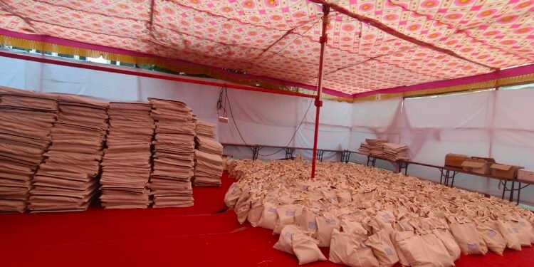 सोलापूर : महापालिका सार्वत्रिक निवडणुकीसाठी मतदान केंद्रात आवश्यक असलेले स्टेशनरी साहित्यासह इतर आवश्यक साहित्य वितरण करण्यासाठीची जय्यत तयारी करण्यात आली आहे. उपायुक्त आशिष लोकरे यांच्या मार्गदर्शनाखाली मोठ्या दोन पिशव्यांमध्ये हे सर्व साहित्य पॅक करून वितरणासाठी नेटके नियोजन केले आहे.