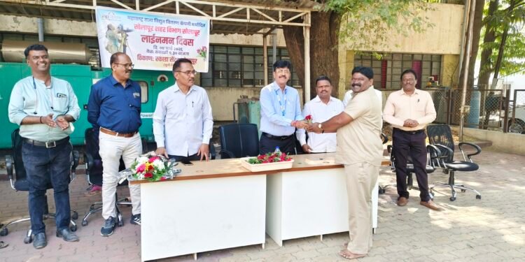 सोलापूर – केंद्र सरकारने ४ मार्च हा दिवस लाईनमन दिन म्हणून घोषित केला असून त्या अनुषंगाने महावितरण शहर विभाग सोलापूर यांच्या वतीने स्काडा सेंटर सोलापूर येथे मोठया उत्साहात साजरा करण्यात आला.
