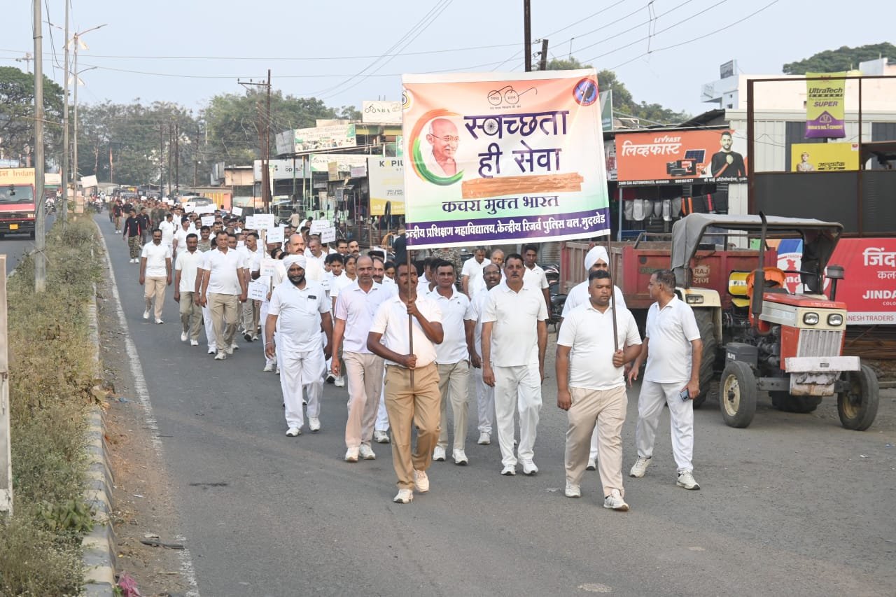 मुदखेड / नांदेड – केंद्रीय प्रशिक्षण संस्था, सीआरपीएफ, मुदखेड, संस्थेचे पोलीस महानिरीक्षक आणि प्राचार्य ख्वाजा सज्जनुद्दीन यांच्या मार्गदर्शनाखाली दि.१ डिसेंबर ते १५ डिसेंबर २०२५ या कालावधीत भारत सरकारद्वारे राबविण्यात येणारी स्वच्छ भारत अभियान-२०२५ ही मोहीम उत्साहाने आयोजित करत आहे. या कार्यक्रमांतर्गत, संस्था स्वच्छता प्रतिज्ञा, कॅम्पस स्वच्छता, रॅली, जागरूकता कार्यक्रम आणि प्लास्टिकमुक्त मोहिमा अशा विविध उपक्रमांचे आयोजन करत आहे. या संदर्भात, दि.०२ डिसेंबर रोजी मुदखेड बाजारपेठ परिसरात एक जागरूकता रॅलीचे आयोजन करण्यात आले होते, ज्यामध्ये संस्थेत उपस्थित असलेले अधिकारी, अधीनस्थ, सैनिक आणि प्रशिक्षणार्थी उत्साहाने सहभागी झाले होते.