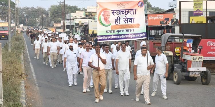 मुदखेड / नांदेड – केंद्रीय प्रशिक्षण संस्था, सीआरपीएफ, मुदखेड, संस्थेचे पोलीस महानिरीक्षक आणि प्राचार्य ख्वाजा सज्जनुद्दीन यांच्या मार्गदर्शनाखाली दि.१ डिसेंबर ते १५ डिसेंबर २०२५ या कालावधीत भारत सरकारद्वारे राबविण्यात येणारी स्वच्छ भारत अभियान-२०२५ ही मोहीम उत्साहाने आयोजित करत आहे. या कार्यक्रमांतर्गत, संस्था स्वच्छता प्रतिज्ञा, कॅम्पस स्वच्छता, रॅली, जागरूकता कार्यक्रम आणि प्लास्टिकमुक्त मोहिमा अशा विविध उपक्रमांचे आयोजन करत आहे. या संदर्भात, दि.०२ डिसेंबर रोजी मुदखेड बाजारपेठ परिसरात एक जागरूकता रॅलीचे आयोजन करण्यात आले होते, ज्यामध्ये संस्थेत उपस्थित असलेले अधिकारी, अधीनस्थ, सैनिक आणि प्रशिक्षणार्थी उत्साहाने सहभागी झाले होते.