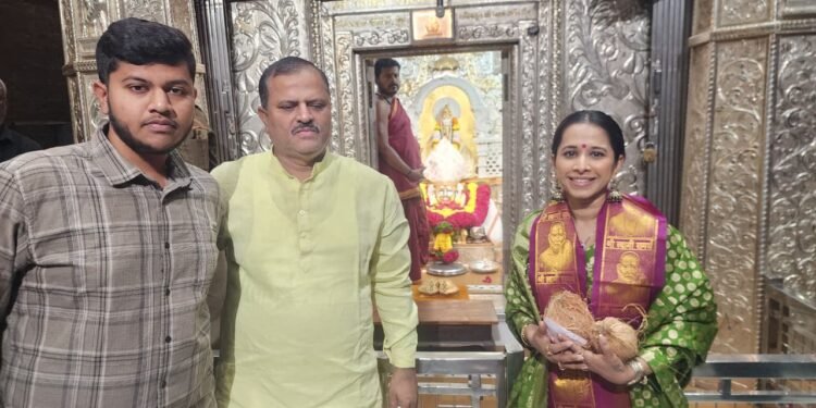 फोटो ओळ – अभिनेत्री श्रेया बुगडे यांचा देवस्थानमध्ये सत्कार करताना महेश इंगळे, प्रथमेश इंगळे व अन्य दिसत आहेत.