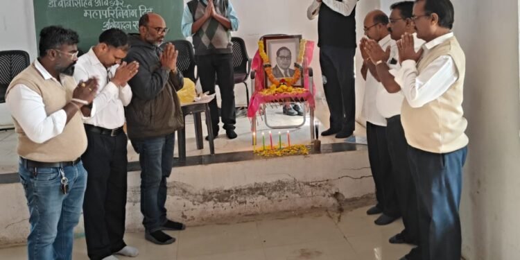 मुक्रमाबाद / नांदेड – महापरिनिर्वाण दिनानिमित्त अभिवादन सभेचे आयोजन राष्ट्रीय सेवा योजना विभाग आणि सांस्कृतिक विभाग यांच्याकडून करण्यात आले होते. यावेळी महामानव भारतरत्न डॉ. बाबासाहेब आंबेडकर यांना अभिवादन करण्यात आले.