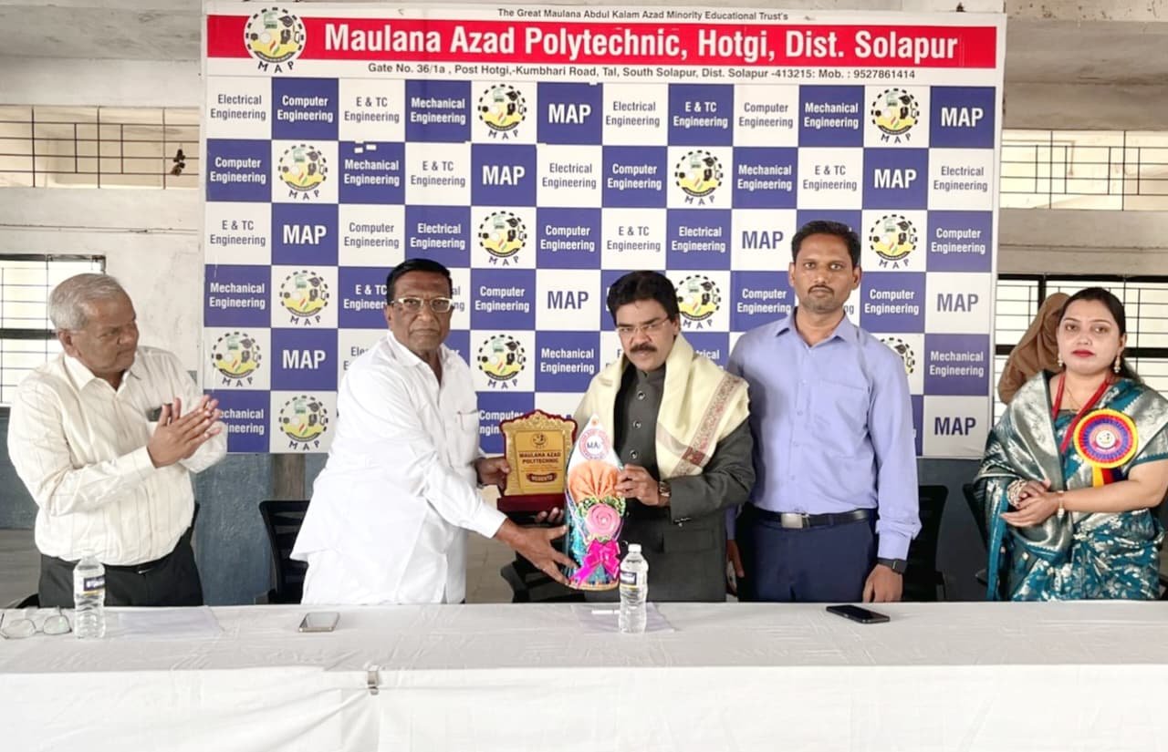 सोलापूर जिल्हा दक्षिण तालुका येथील होटगी गावात असलेल्या मौलाना आझाद पॉलिटेक्निक कॉलेजमध्ये संपन्न झालेल्या कार्यक्रमात अध्यक्ष अमिरुद्दीन शेख, सचिव नुराशा सय्यद, प्राचार्य सरफराज शेख आदी उपस्थित होते.