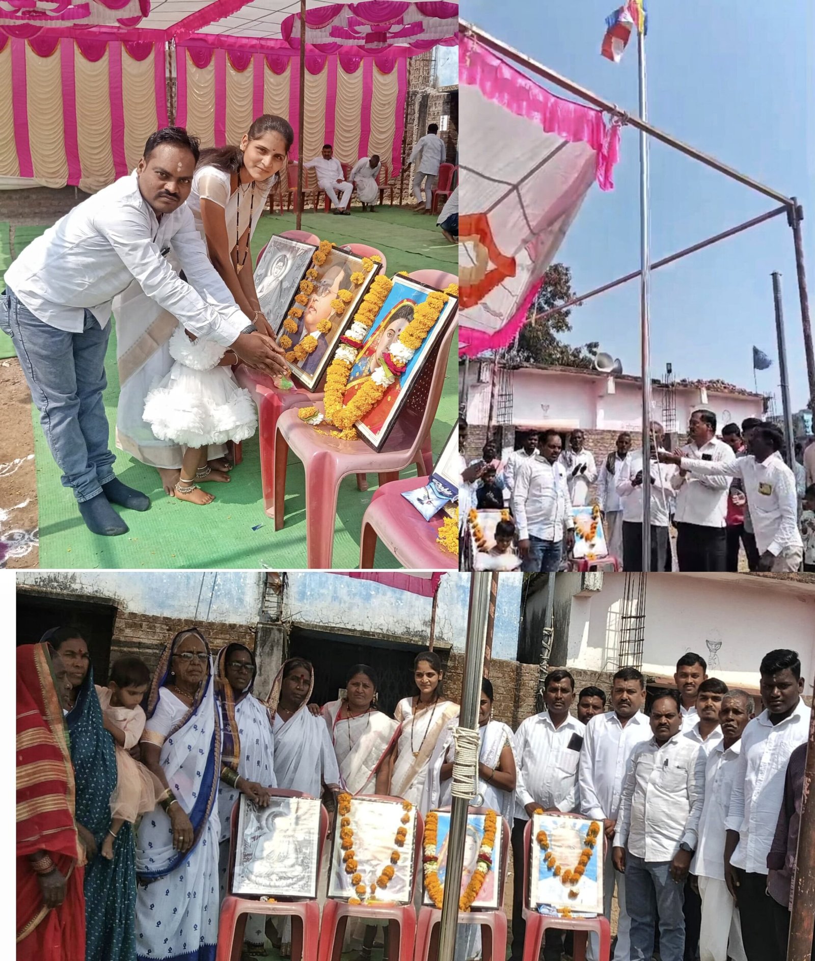डॉ .बाबासाहेब आंबेडकर,त्यागमूर्ती माता रमाबाई आंबेडकर, साहित्यरत्न लोकशाहीर अण्णाभाऊ साठे यांच्या प्रतिमांना शिवराज पाटील,मष्णा बाऱ्हाळे,ललिताबाई सोनकांबळे,राम सोनकांबळे गुरुजी, बालाजी सोनकांबळे सह पत्रकार भारत सोनकांबळे इत्यादींच्या हस्ते,धूप प्रज्वलन व पुष्पमाला अर्पण करून अभिवादन करण्यात आले.