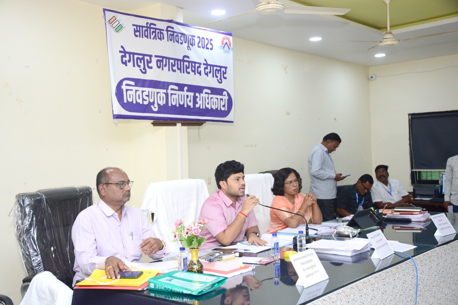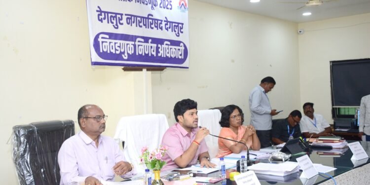 देगलूर / नांदेड : नगरपरिषद सार्वत्रिक निवडणूक 2025 अनुषंगाने राज्य निवडणूक आयोगाने जाहीर केलेल्या कार्यक्रमानुसार नामनिर्देशनपत्रांच्या छाननीनंतर वैध ठरलेल्या 102 नगरसेवक पदासाठी व 5 नगराध्यक्ष पदासाठीच्या उमेदवारांना निवडणूक सूचनांचे आज (सोमवारी) रोजी सभेचे आयोजन करुन मार्गदर्शन करण्यात आले.