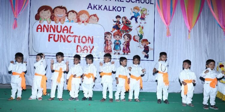 अक्कलकोट – शहरातील अभिनंदन प्री स्कूलचे वार्षिक स्नेहसंमेलन नुकतेच उत्साहात साजरी करण्यात आले. या कार्यक्रमासाठी प्रमुख पाहुणे म्हणून चपळगाव येथील सामाजिक कार्यकर्ते सिद्धाराम भंडारकवठे , चपळगाव च्या सरपंच वर्षा भंडारकवठे , सेवानिवृत्त गट विकास अधिकारी उत्तमराव वाघमोडे , श्री स्वामी समर्थ अन्नछत्र मंडळाचे कार्यकारी विश्वस्त अमोलराजे भोसले ,अमर पाटील , पांडुरंग पाटील , अरिंजय गांधी , माजी मुख्याध्यापक बी जी शिंदे , सुखदा गांधी , अभिनंदन गांधी , राहुल गांधी , केतकी गांधी , संजना गांधी , अरविंद शिंदे , मुख्याध्यापिका श्रीदेवी शिंदे आदी उपस्थित होते.