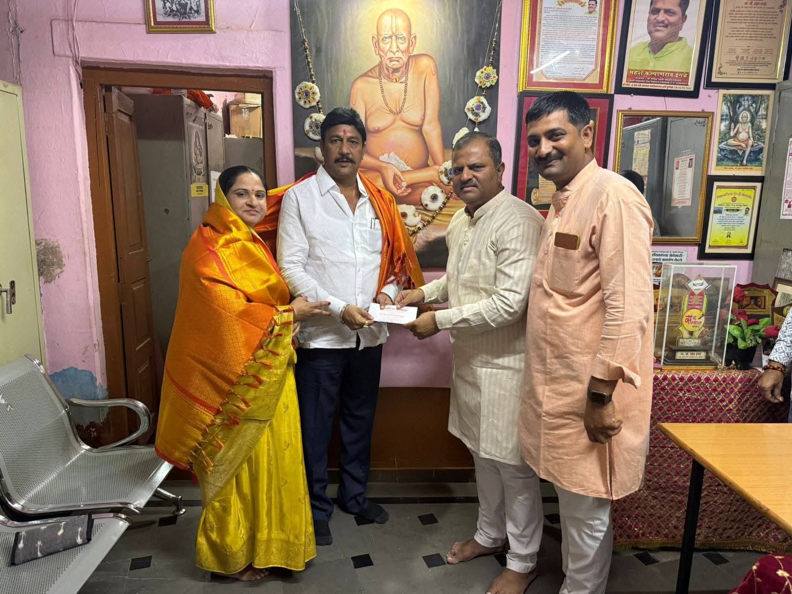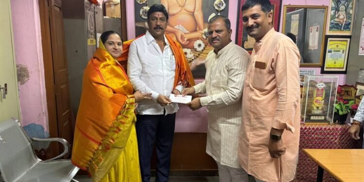 फोटो ओळ – संजय पाटील-घाटणेकर व त्यांचे सुविद्य पत्नी यांचा देवस्थान कार्यालयात सत्कार करताना महेश इंगळे व अन्य दिसत आहेत.