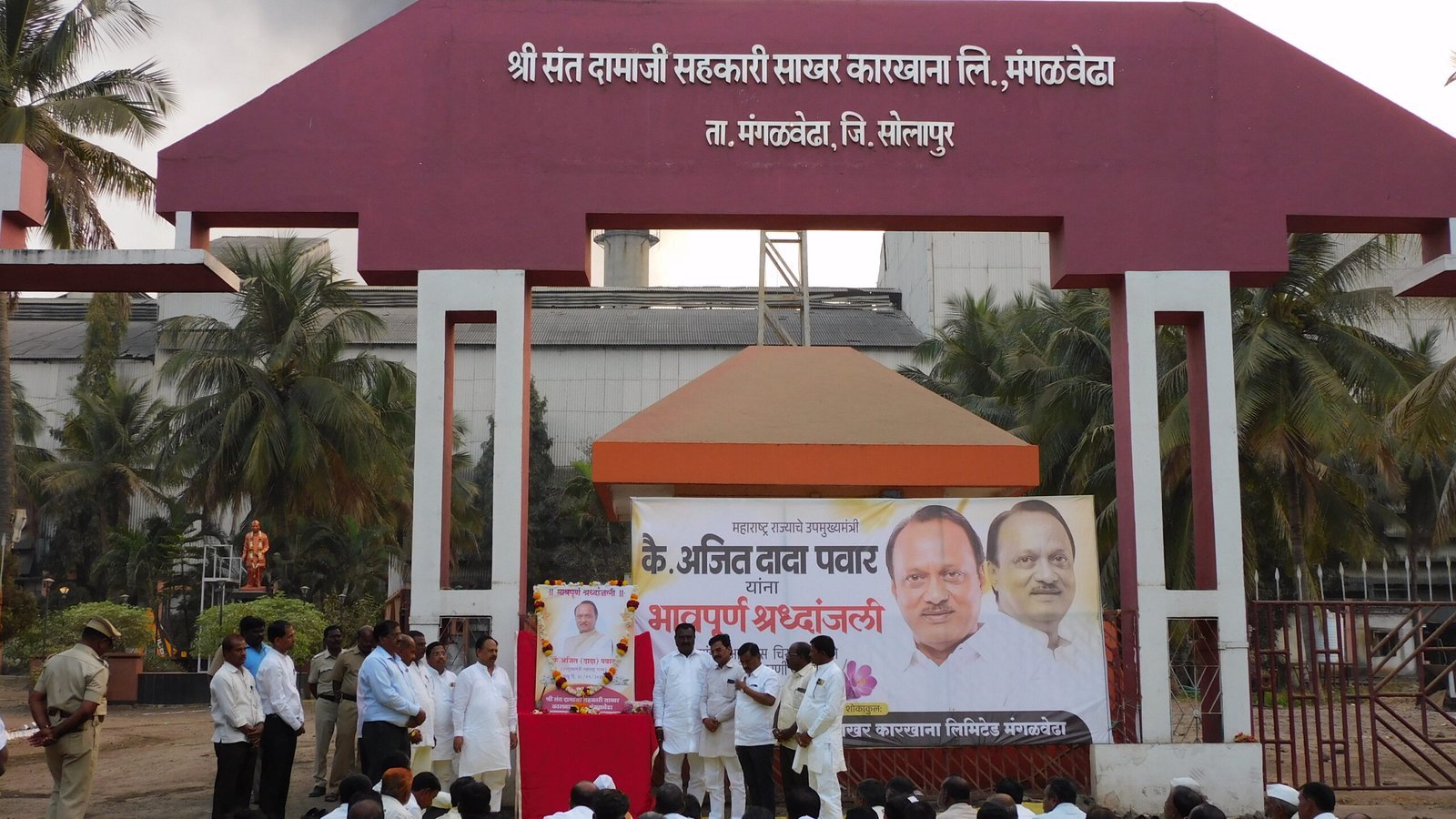 कारखान्याचे संचालक श्री।राजेंद्र चरणुकाका पाटील यांनी सर्वसामान्य शेतकरी तसेच गोरगरीब जनतेसाठी मदत करण्याचे काम स्व।अजितदादांनी सदैव केलेचे सांगून आपल्या दामाजी सहकारी साखर कारखान्यास त्यांनी वेळोवेळी केलेल्या मदतीचा आवर्जुन उल्लेख केला।