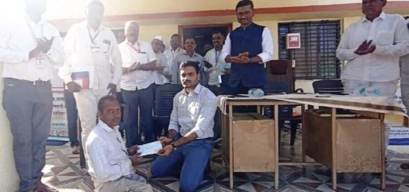 दिव्यांगाना धनादेश केला सुपूर्द सीईओ स्वतः बसले जमिनीवर