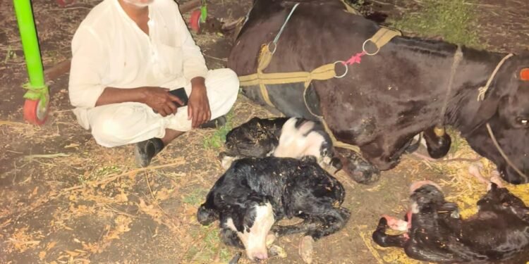 वाशी – तालुक्यातील सटवाईवाडी येथील प्रदीप फरताडे यांच्या गाईने चक्क चार वासरांना जन्म दिल्याची दुर्मीळ आणि आनंददायी घटना घडली आहे. ग्रामीण भागात अत्यंत क्वचित घडणाऱ्या या घटनेमुळे संपूर्ण परिसरात आनंदाचे वातावरण निर्माण झाले असून नागरिकांमध्ये उत्सुकता पाहायला मिळत आहे.