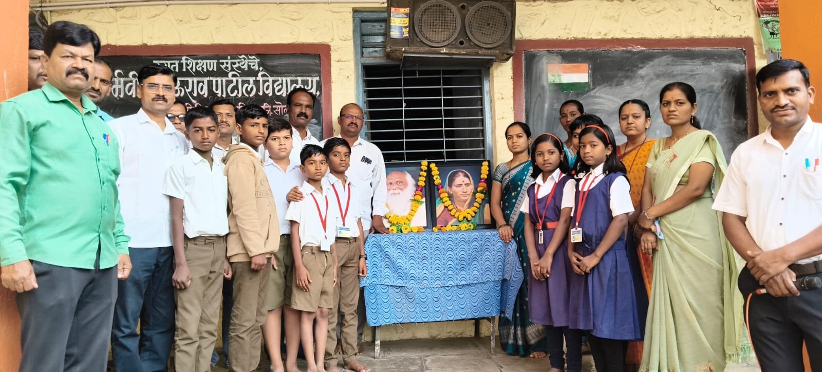 कर्मवीर भाऊराव पाटील विद्यालयात लक्ष्मीबाई पाटील यांना अभिवादन करताना.