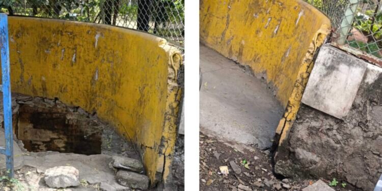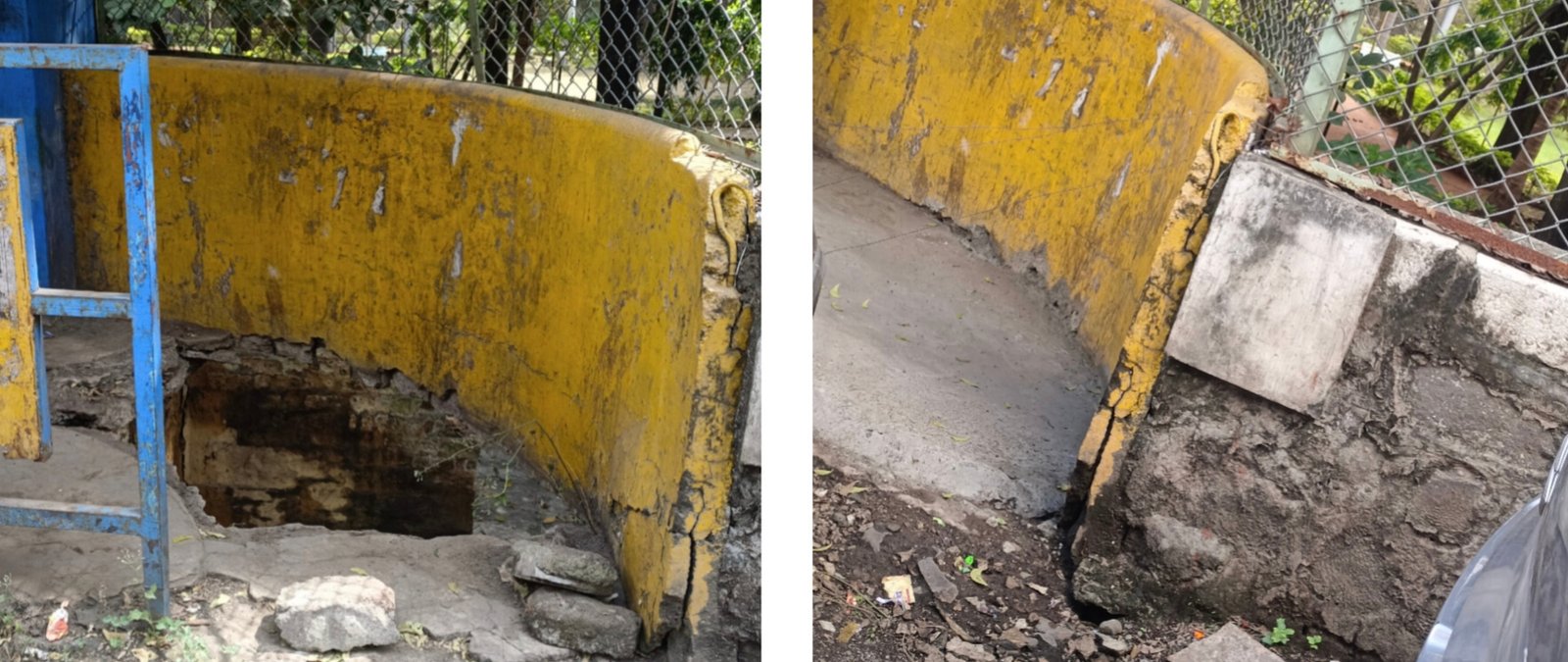 महापालिकेच्या बस स्टॉपमध्ये पडलेले भगदाड बुजविले
