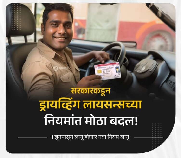 ड्रायव्हिंग लायसन्स मिळविण्यासाठी सरकारने नियम बदलले आहेत. सरकारी प्रादेशिक परिवहन कार्यालयात व्यक्तींना ड्रायव्हिंग चाचणी देण्याची गरज नाही.