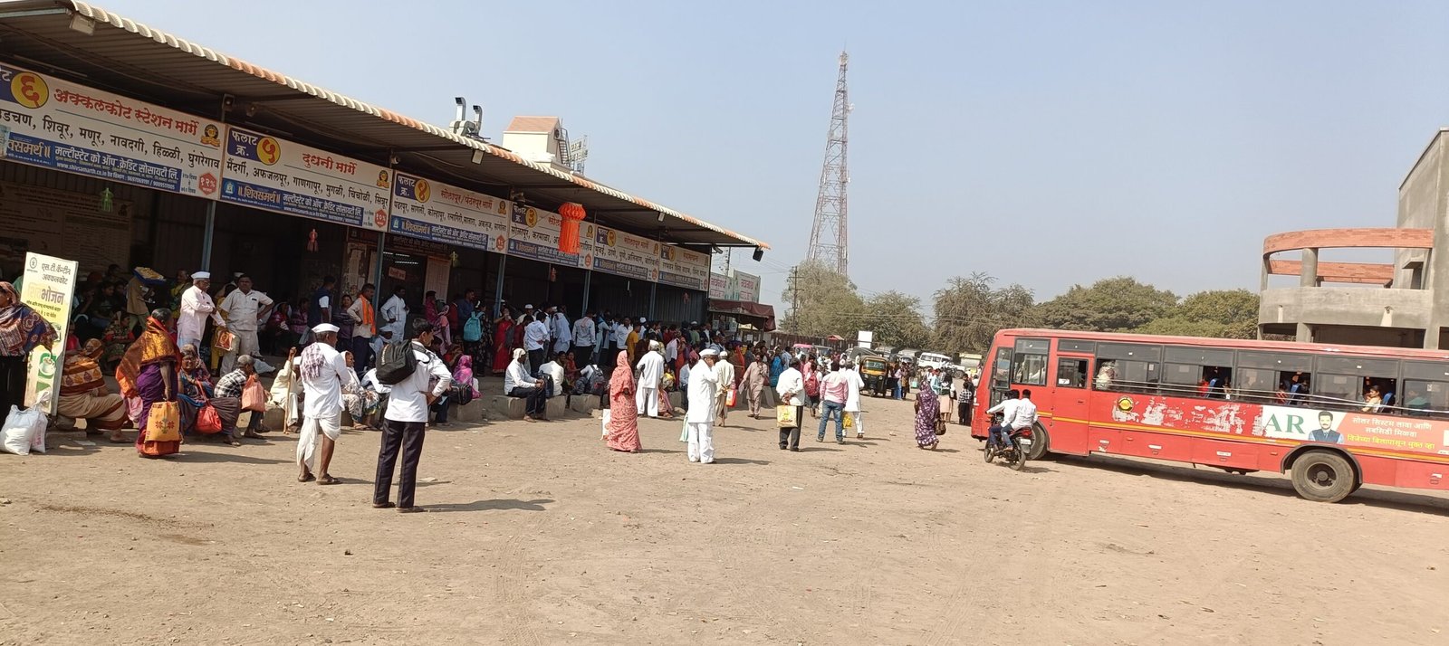 अक्कलकोट बस स्थानकातून दररोज हजारो प्रवासी हे प्रवास करतात. तीर्थक्षेत्र अक्कलकोट नगरीत श्री स्वामी समर्थांच्या दर्शनासाठी दररोज हजारो भाविक भक्त हे बस द्वारे येत असतात. तसेच अक्कलकोट शहर तालुक्यातून दररोज हजारो प्रवासी हे परगावी जात असतात. अशा गजबजलेल्या अक्कलकोट बस स्थानकात धुळीमुळे प्रवासी वर्गांचे अतोनात हाल होत आहेत. वयोवृद्ध तसेच महिलावर्ग , विद्यार्थी , परगावचे भाविक यांना धुळीचा सामना करावा लागत आहे. बस स्थानकातील धुळीमधूनच प्रवाशांना जावे लागत आहे. अक्कलकोट बस स्थानकातील धुळीबाबत आगार प्रमुखांना काहीच देणे लागत नसल्याचे दिसत आहे. बस स्थानकातील धुळीवर नियंत्रण मिळविण्यासाठी पाणी फवारण्याचे साधे काम हे राज्य परिवहन महामंडळाकडून होत नसल्याबद्दल हजारो प्रवाशांनी संताप व्यक्त केला आहे. राज्याचे परिवहन मंत्री अक्कलकोट बस स्थानकाला भेट देऊन पाहणी करावी अशी मागणी प्रवासी वर्गातून केली जात आहे. सध्या अक्कलकोट बस स्थानकाच्या नूतन इमारतीचे काम सुरू आहे. हे काम आणखीन काही महिने चालणार आहे. पण तोपर्यंत अक्कलकोट बस स्थानकात येणाऱ्या प्रवाशांना सोयी देणे हे राज्य परिवहन महामंडळाचे काम आहे. केवळ नवीन इमारत निर्माण होत आहे हे किती दिवस सांगणार असा प्रश्न उपस्थित केला जात आहे. अक्कलकोट बस स्थानकातील धुळीचा बंदोबस्त करण्याची मागणी परगावच्या तसेच स्थानिक प्रवासी वर्गातून केली जात आहे.