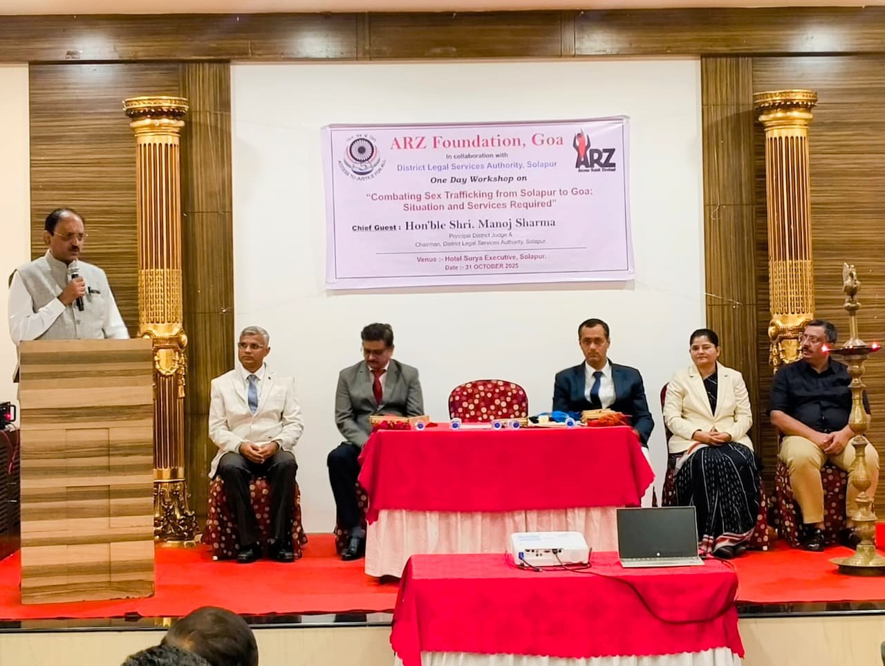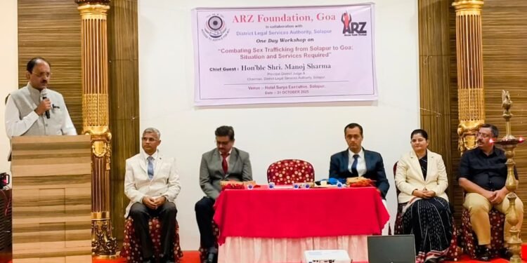 सोलापूर – जिल्हा विधी सेवा प्राधिकरण, सोलापूर व अर्ज फौंडेशन गोवा यांच्या संयुक्त विद्यमाने मानवी लैंगिक तस्करी प्रतिबंध काळजी व लढा या विषयावर एक दिवशीय कार्यशाळेचे आयोजन करण्यात आले होते. प्रमुख जिल्हा न्यायाधीश तथा सोलापूर जिल्हा विधी सेवा प्राधिकरणचे अध्यक्ष तथा कार्यशाळेचे उद्घाटक मनोज शर्मा हे अध्यक्ष स्थानी होते.
