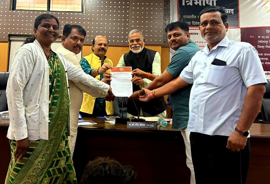 त्रिभाषा शिक्षण समिती सोलापुरात असली होती त्यावेळी मनसे शिक्षक सेनेचे प्रदेश सरचिटणीस जयवंत हक्के , राज्य उपाध्यक्ष संतोष घोडके , जिल्हाध्यक्ष प्रकाश कोळी, शहर अध्यक्ष विरसंगप्पा भोज महिला प्रमुख मंगल चव्हाण बाळकृष्ण लाड यांनी समितीचे अध्यक्ष डॉ. नरेंद्र जाधव आणि डॉ. वामन केंद्रे यांना निवेदन दिले.