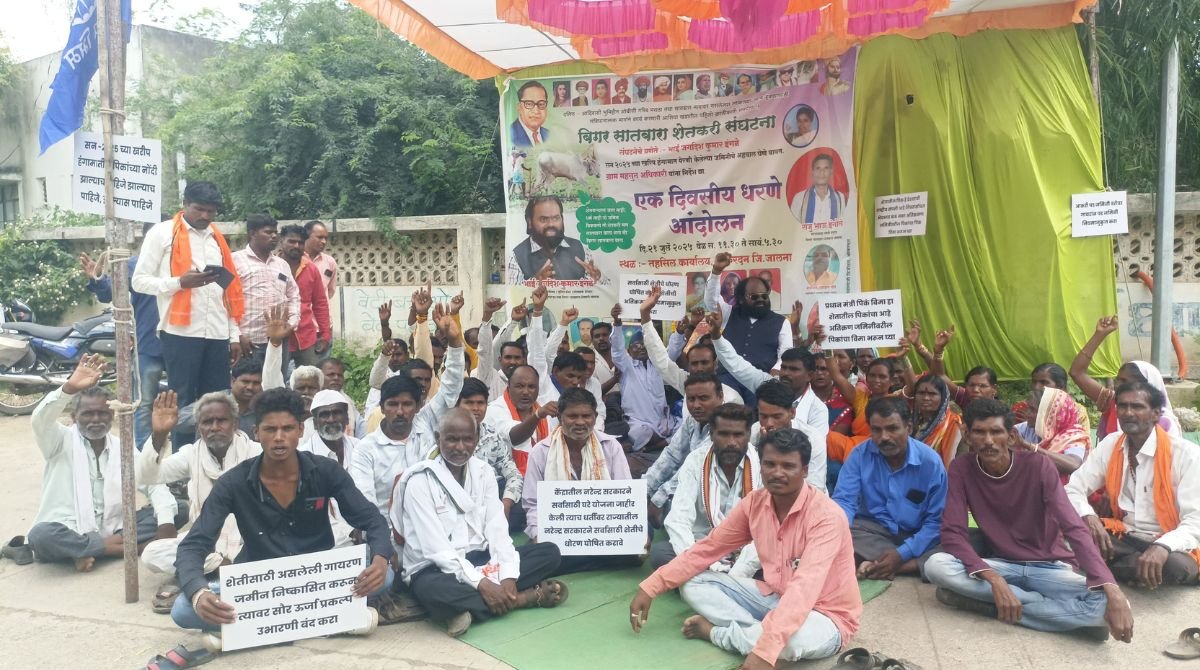 तभा फ्लॅश न्यूज/ भोकरदन : ग्राम महसूल अधिकाऱ्यांमार्फत खरीप हंगामाचा प्रतिवेदनात्मक अहवाल सादर करण्याचे निर्देश द्या आशा मागणी साठी बिगर सातबारा शेतकरी संघटनेच्या नेतृत्वा खाली कास्तकरानी भोकरदन तहसील कार्यालय समोर एक दिवसीय धरणे आंदोलन करण्यात आले.