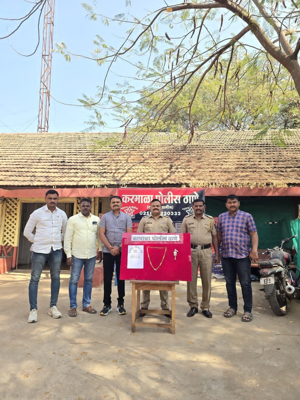 जेऊर – करमाळा पोलिसांनी करमाळा शहर व परिसरातील चोऱ्यावरती नियंत्रण व झालेल्या चोऱ्यांचा शोध तात्काळ लावण्याचा धडाका नवीन वर्षात ही सुरूच ठेवला आहे. पाच लाख अंशी हजाराच्या मोठ्या चोरीचा शोध चोवीस तासाच्या आत लावून सामान्य नागरिकांना दिलासा दिला आहे. कालच्या चोरीत डोंबिवली येथून सुलोचना मच्छिंद्र लोहार नातुच्या लग्नाला वरकटणे ता करमाळा येथे आलेल्या असता लग्न कार्यक्रमानंर त्या त्यांचा भाचा बाबासाहेब नंदरगे करमाळा येथे मुक्कामी थांबल्या. दुसऱ्या दिवशी एसटी प्रवासात त्यांचेजवळील ५ तोळे वजनाचे गंठण व चांदीचा छल्ला गर्दीचा फायदा घेत चोरट्यानी चोरला. त्यानंतर त्यांनी करमाळा पोलिस ठाण्यात तक्रार नोंदवली.