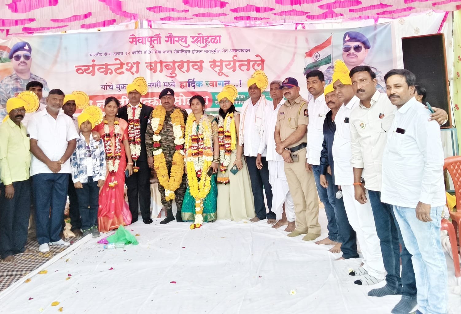 आपले मनोगत व्यक्त करत असताना सैनिक व्यंकट सूर्यतले यांनी हा सन्मान सोहळा पाहून माझ्या आई-वडिलांना खूप आनंद झाला असता पण ते आज आमच्यात नाहीत या गोष्टीचे खूप दुःख वाटते. तसेच ऑपरेशन सिंदूर मध्ये माझा सहभाग होता आणि तिथला एक धक्कादायक किस्सा सांगत 22 वर्षाचा खडतर प्रवास व गरीबीतलं बालपणही उपस्थितांना अगदी भावुक होऊन सूर्यतले यांनी सांगितले तसेच मुलगा प्रीतम आणि मुलगी प्रणाली यांनीही आपले पप्पा जेव्हा नसायचे तेव्हा मम्मी कशी दिवस काढायची आणि पप्पांना कशी हिम्मत द्यायची घरचा बाप जेव्हा घरी नसतो तेव्हा घरची परिस्थिती काय असते ते आम्ही स्वतः अनुभवलंय अशा भावना दोन्ही लेकरांनी व्यक्त केले.