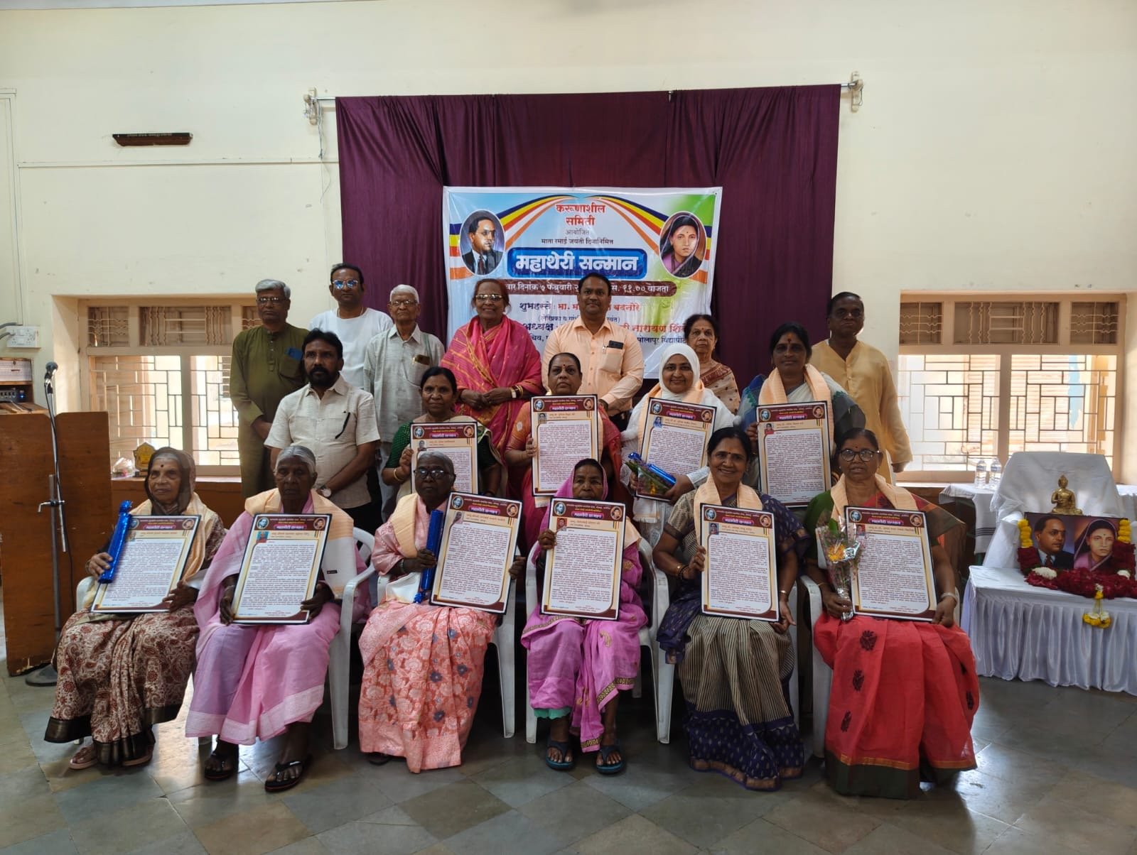 मंचावर निवृत्त प्राचार्य डॉ. नसीमा पठाण, करुणाशील समितीचे प्रमुख आशुतोष नाटकर , ज्येष्ठ आंबेडकरी विचारवंत प्रा.एम.आर.कांबळे, प्रा. नरेश बदनोरे, मारुती कटकधोंड, पद्माकर कुलकर्णी आदी उपस्थित होते. अध्यक्ष मनोगतात रमाई आंबेडकर यांच्या जयंती निमित्ताने माता-भगिनींचा माता महाथेरी यांच्या नावाने सन्मान होत आहे अभिमानास्पद गोष्ट असल्याचे मत डॉ. शिवाजी शिंदे यांनी व्यक्त केले.
