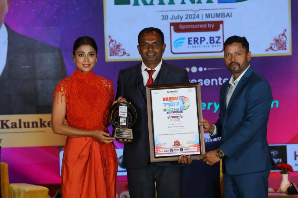 प्रसिद्ध बॉलीवूड अभिनेत्री मिस श्रिया सरन यांच्या हस्ते उद्यानपंडित श्री अभयकुमार बाजीराव काळुंके यांना कृषी व रोपवाटिका क्षेत्रात केलेल्या महाराष्ट्र इतर सहा राज्यात भरीव कामगिरीबद्दल राष्ट्रीय स्तरावरचा भारत उद्योग रत्न 2024 पुरस्कार प्रदान करण्यात आला.
