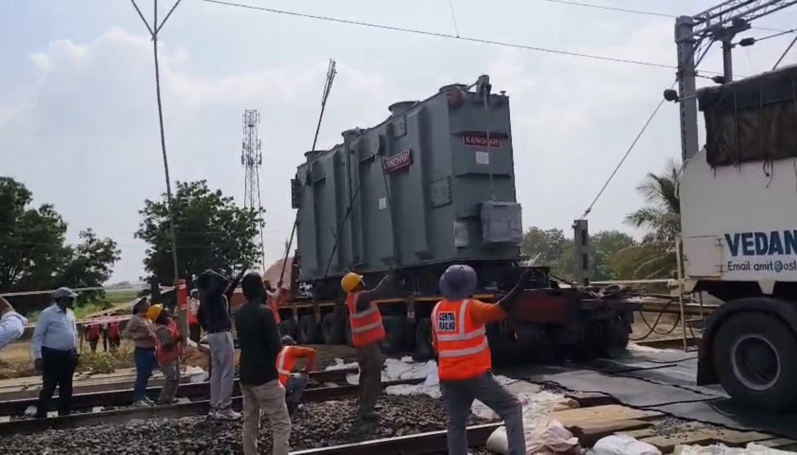 गौडगाव स्थानकाजवळील एका ठिकाणी ट्रॅक क्रॉसिंगचे काम करण्यात आले. हे ऑपरेशन ०४.१२.२०२५ रोजी दुपारी १२:३० ते ०३:१५ दरम्यान यशस्वीरित्या पूर्ण झाले. समन्वित ऑपरेशन दरम्यान, सुमारे १२० टन वजनाचा एक पुलर आणि ट्रेलर संयोजन, ज्यामध्ये ९५/१०० एमव्हीए स्कॉट ट्रान्सफॉर्मर होता, सुरक्षितपणे ट्रॅकवरून हलवण्यात आला. याव्यतिरिक्त, १२.३ एमव्हीए ऑटो ट्रान्सफॉर्मरने भरलेले ४ ट्रक देखील यशस्वीरित्या ओलांडण्यात आले, जे विभागासाठी एक महत्त्वपूर्ण लॉजिस्टिक आणि अभियांत्रिकी कामगिरी आहे.