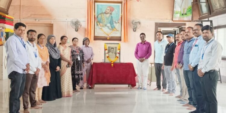 सोलापूर : नवी पेठ येथील महानगरपालिका प्राथमिक शिक्षण मंडळामध्ये स्वातंत्र्यवीर विनायक सावरकर यांच्या स्मृतिदिनानिमित्त त्यांच्या प्रतिमेस महानगरपालिका प्राथमिक शिक्षण मंडळाचे प्रशासनाधिकारी मल्हारी माने यांच्या हस्ते पुष्पहार अर्पण करून अभिवादन करण्यात आले.